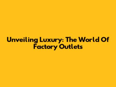 Unveiling Luxury: The World Of Factory Outlets