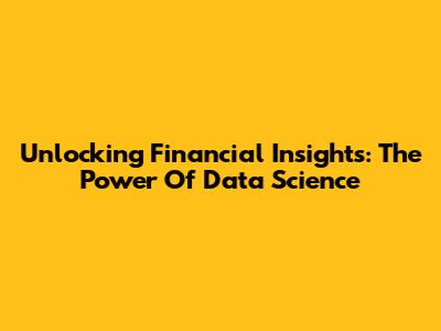 Unlocking Financial Insights: The Power Of Data Science