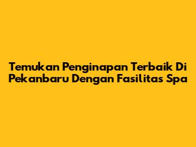 Temukan Penginapan Terbaik Di Pekanbaru Dengan Fasilitas Spa