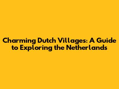 Unveiling the Allure of Dutch Villages: A Journey Through Time and Tradition