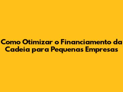 Para otimizar o financiamento da cadeia, as pequenas empresas devem implementar várias estratégias: