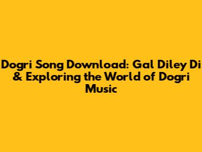 Hey music lovers! Ever found yourself humming a tune, desperately wanting to download it so you can listen anytime? We've all been there! Today, we're diving deep into the world of Dogri music, with a special focus on the super popular song, "Gal Diley Di." We'll explore how you can download it, check out some cool platforms, and maybe even discover some other awesome Dogri tracks along the way. Get ready to groove to the beats of Dogri music! Let's get started, shall we?
