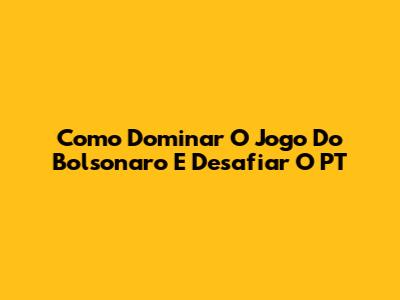 Como Dominar O Jogo Do Bolsonaro E Desafiar O PT