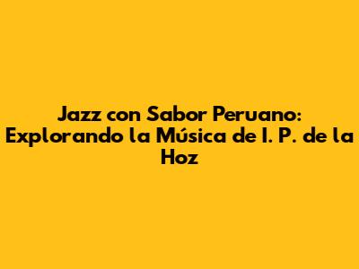 ¡Hola, amigos melómanos! ¿Están listos para un viaje musical que combina la sofisticación del jazz con el vibrante sabor de Perú? Hoy, nos sumergiremos en el fascinante mundo de I. P. de la Hoz, un músico que ha sabido fusionar estos dos universos de manera magistral. Prepárense para descubrir un jazz único, lleno de ritmo, emoción y la inconfundible esencia peruana. ¡Acompáñenme!