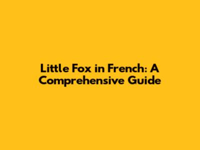 Little Fox In French: A Comprehensive Guide