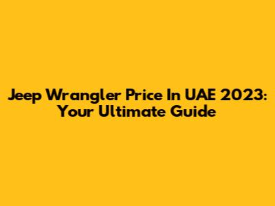 Jeep Wrangler Price In UAE 2023: Your Ultimate Guide