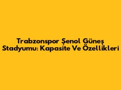Trabzonspor Şenol Güneş Stadyumu: Kapasite Ve Özellikleri