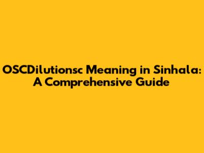OSCDilutionsc Meaning In Sinhala: A Comprehensive Guide