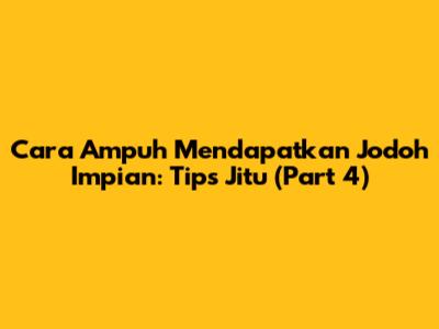 Cara Ampuh Mendapatkan Jodoh Impian: Tips Jitu (Part 4)