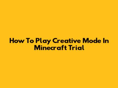 How To Play Creative Mode In Minecraft Trial