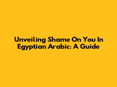 Unveiling 'Shame On You' In Egyptian Arabic: A Guide