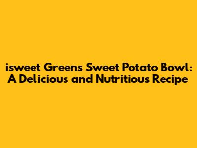 The isweet Greens Sweet Potato Bowl is a delicious, nutritious, and versatile meal that's perfect for any occasion. Whether you're looking for a quick and easy lunch, a satisfying dinner, or a healthy breakfast, this bowl has got you covered. With its combination of sweet potatoes, fresh greens, and other wholesome ingredients, it's a winner every time. So, give it a try and let me know what you think! I'm sure you'll love it as much as I do.