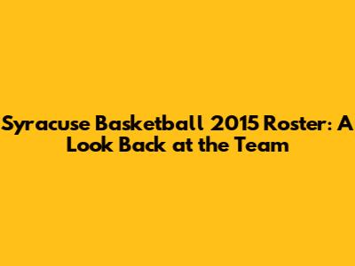 Hey basketball fanatics! Let's rewind the clock and dive into the 2015 Syracuse Orange basketball roster. This was a season filled with its share of ups and downs. It's time to relive the memories, analyze the players, and appreciate the journey. We're going to break down the key players, their contributions, and what made the 2015 team tick. So, grab your orange gear, and let's get started! We will explore the players that made the 2015 team. We will look at their roles, stats, and how they contributed to the team's overall performance. From the star players to the unsung heroes, we'll cover it all. So, let's lace up our virtual sneakers and get ready to reminisce about the Syracuse Orange basketball team of 2015. We'll examine the coaching staff, including the legendary Jim Boeheim, and how their strategies shaped the team's performance. Furthermore, we will delve into the season's highlights, key games, and memorable moments that defined the 2015 season for the Syracuse Orange. Buckle up, guys, it's going to be a fun ride through Syracuse basketball history!