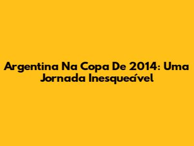 Argentina Na Copa De 2014: Uma Jornada Inesquecível